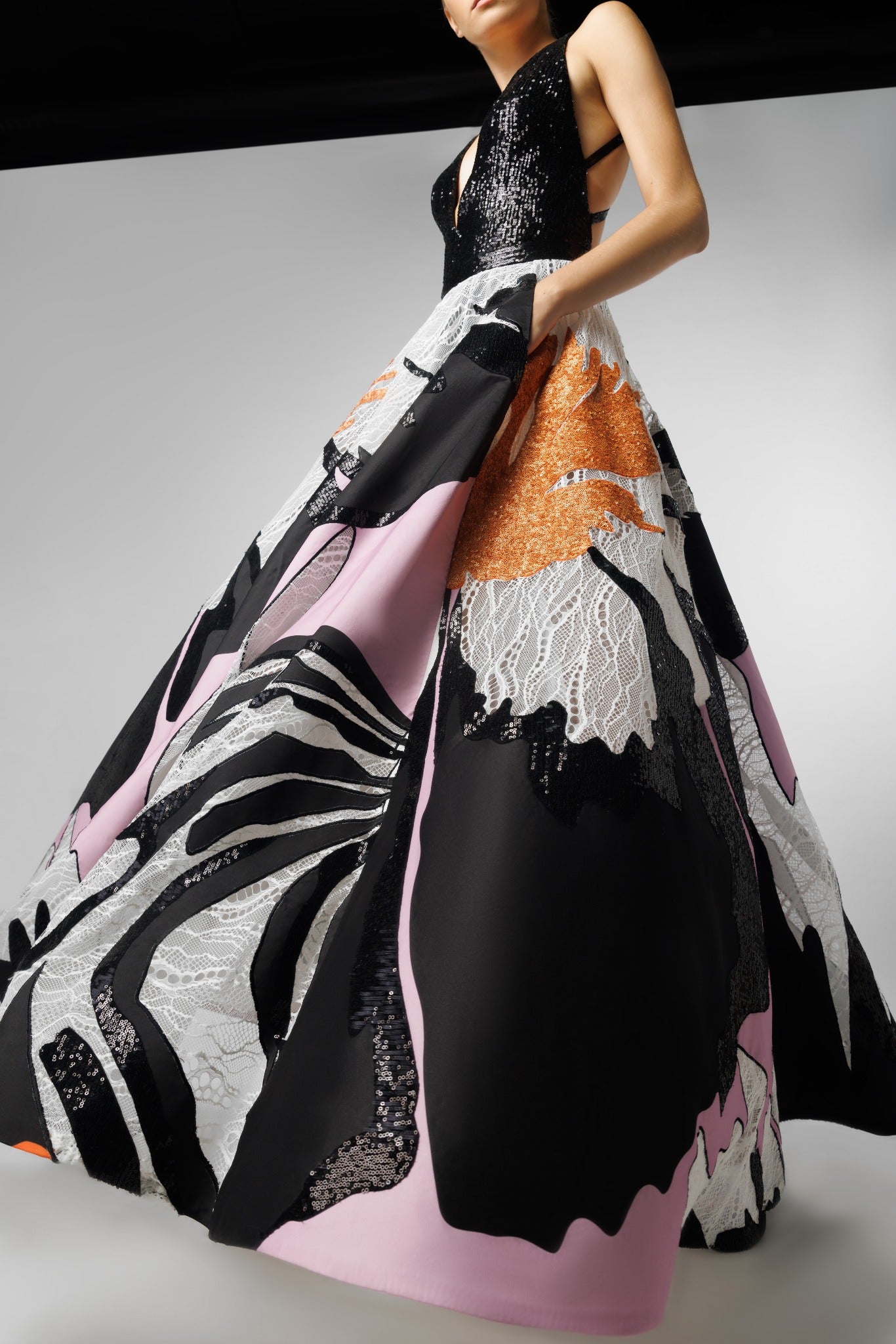 Deep V Neck Bodice Top With Multi Patched Skirt