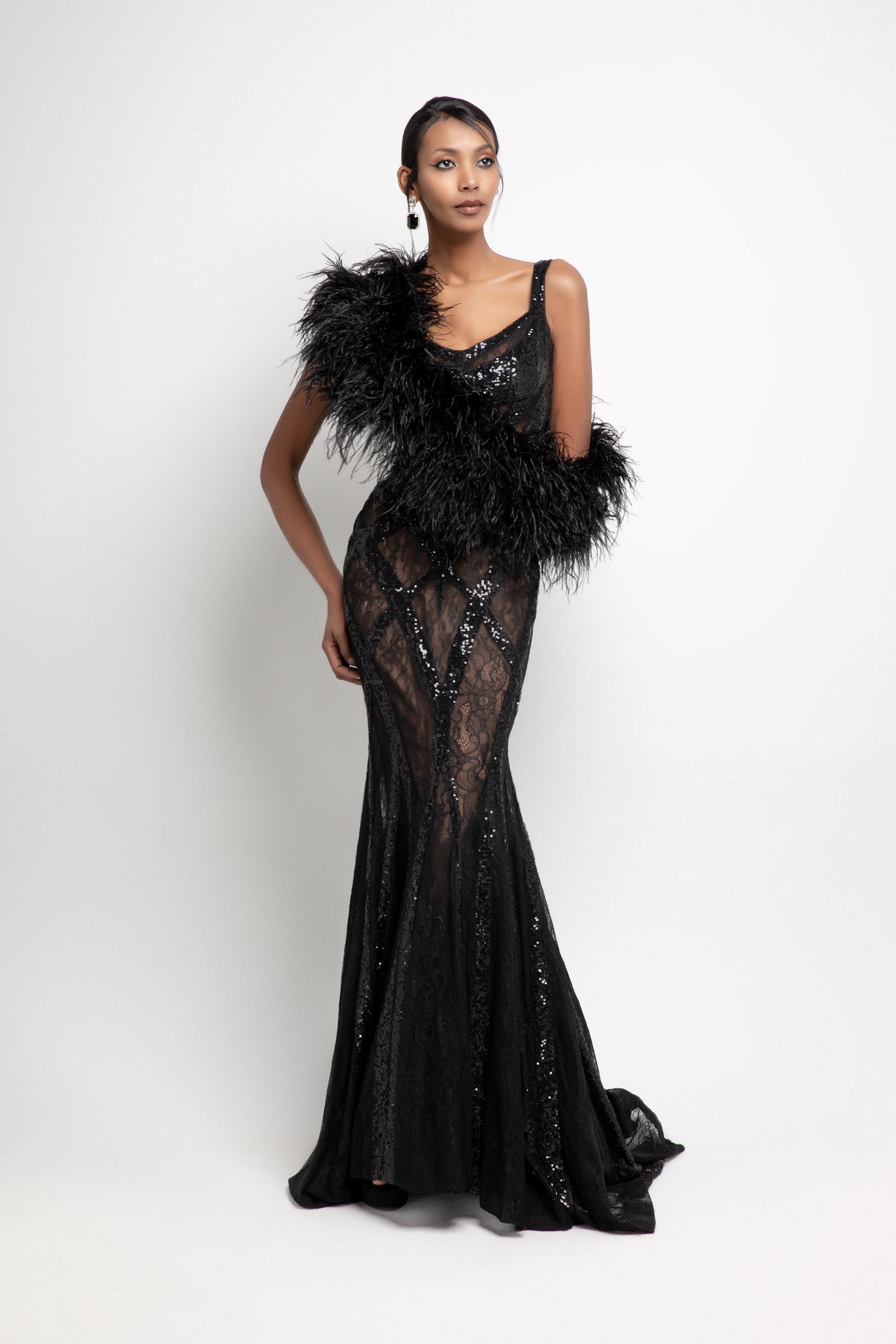 Look 10 B - Jean fares couture - JFC- Classy black feathers scarf