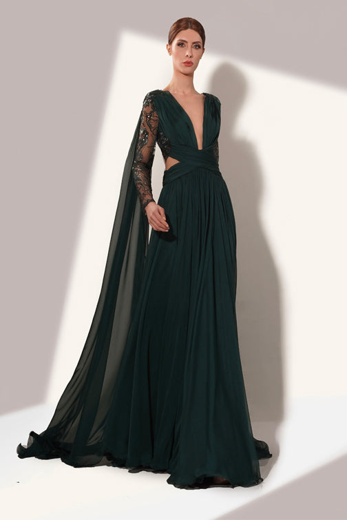 Look 19 - elegant dark green dress with train